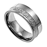 Constructed from Surgical grade stainless steel. Dome shaped interior for comfort fit. Inscription on front reads. "Man of God" and on back reads, "1 Timothy 6:11." Free Shipping